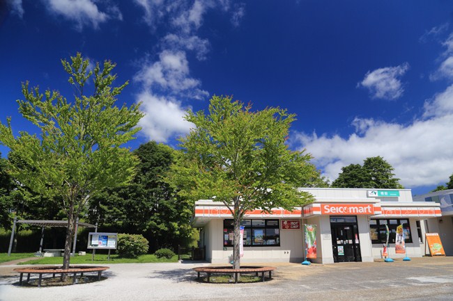 快晴のドライブ。まずは、SAへ。 北海道に来たことを実感するものは幾つかありますが、セイコーマートもその一つ。小さな町も網羅し、オリジナル商品も豊富。とくにお店で調理されたオニギリ、弁当類は食材も北海道産で絶品。夏はレジにある茹トウモロコシが楽しみです。