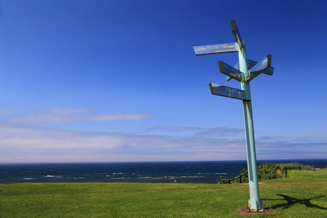 曇っていた空も晴れてきました。残念ながらサハリンは見えませんでしたが、日本最北端「宗谷岬」です。ここからオホーツク海に沿って、南下します。