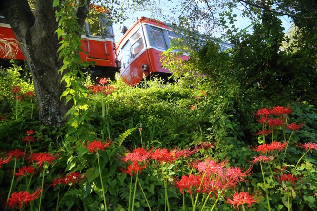 半信半疑で訪ねた箱根登山鉄道でしたが、大平台にありました。この季節、至るところで「ニョキニョキ」が彼岸花の面白いところです。