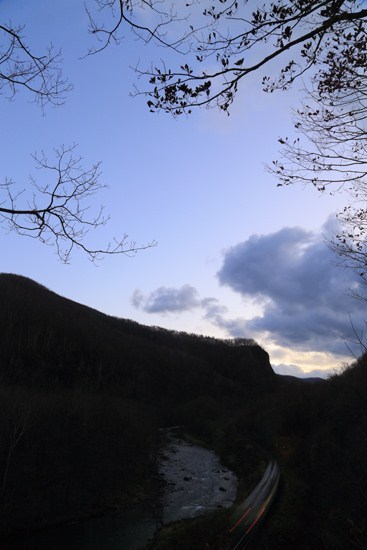 白滝Sカーブも紅葉は終わっていました。秋の北海道は日が落ちるのが早いです。冷えてきました。そんな気持ちを構図に込めてみました。