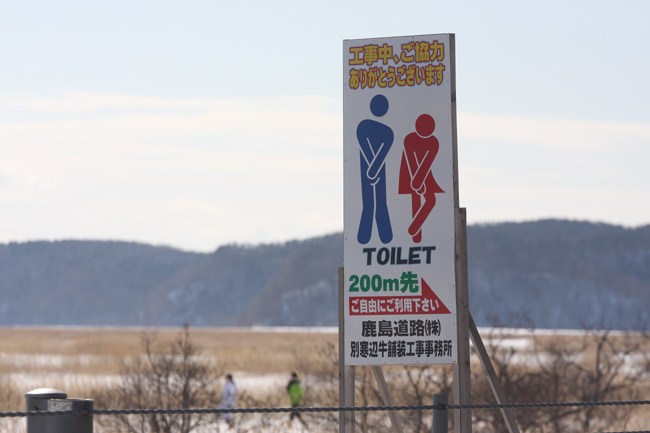 丘を降りて、車が止めてある水鳥センターに歩いて向かう途中、目に付いた癒し系の看板。せっかく厚岸まで来ましたが、牡蠣はパスして、次の場所へ移動します。