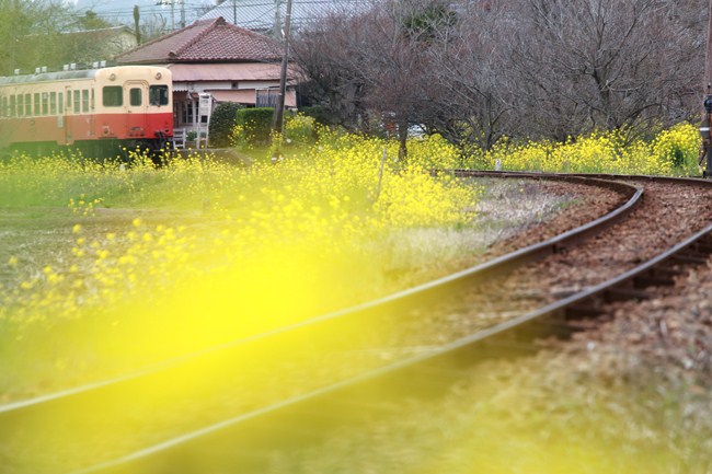 お馴染みのカーブ、菜の花、そして小湊ツートン。変わらぬ光景であることが嬉しい!