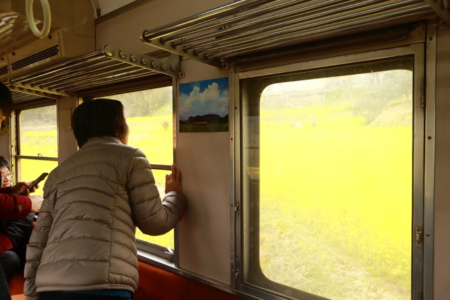 久保、里見、月崎、大久保を過ぎ、養老渓谷が近づくと、車窓は一面黄色!