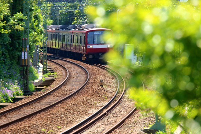 流し撮りもすっきり決めて(TOP画)、気分よく新緑のカーブ。赤が似合う光景です。