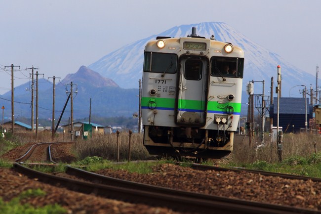 この場所は、山が見えるかどうか、直前まで分からないので、見えたときは有頂天になります。ようやくキハ40