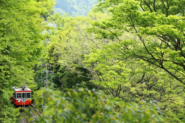 緑に包まれて、箱根カラーの電車が顔を出す。春の素敵なシーンを撮って、春の箱根を締めました。FIN