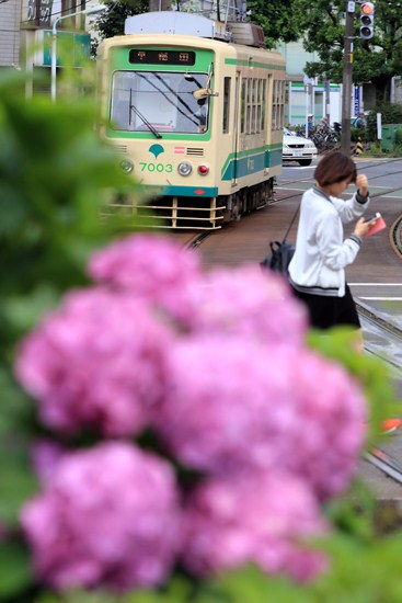 ところ変わって荒川線。今年はバラも紫陽花も早いです。