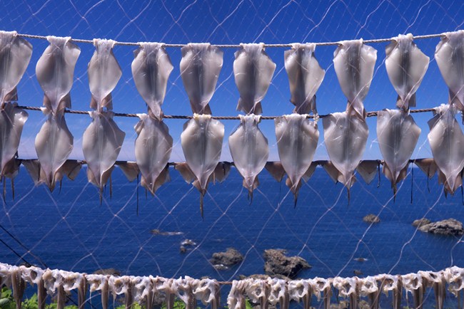 県境あたりにある日本海を望む絶景のイカ焼き。五能線を訪ねたときは、いつも最初に休憩する場所です。旅に出たことを実感できます。今回タコも美味いことを発見しました。