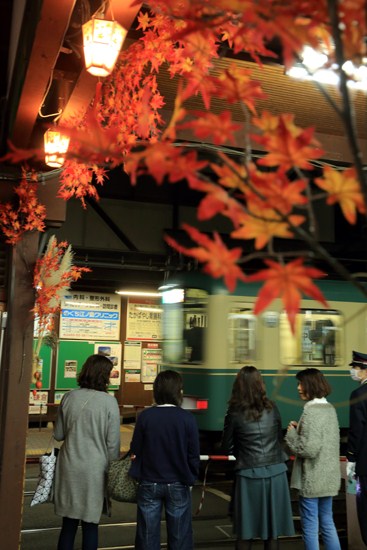 毎回楽しみな、江ノ電の駅飾り。11月は紅葉です。