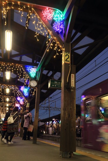 日没後は、長谷駅へ。今年のイルミは気合が入っています。