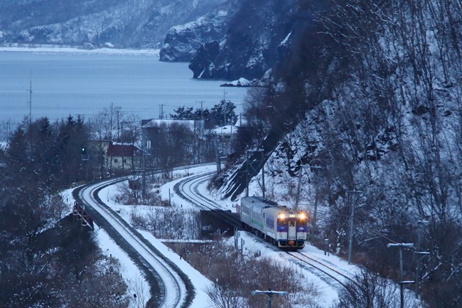 峠越えの三連は、日高色を先頭にやってきました。今日もキハ運ありです。年末年始と比べ、少し日が長くなりました。