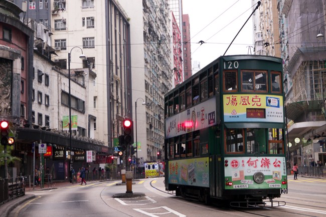 ホテルに戻り、朝風呂に入り、身支度を整えて、地場の食堂でゆっくり飲茶を戴き、通りに出ると、120号車。これは香港トラムで唯一未更新の車両で、1950年代製 、見られたらラッキーと言われている車両です。江ノ電で言えば300形のような存在でしょうか。行き先表示は「北角」、これは二重にラッキー! EOSはカバンの中ゆえ、手持ちLUMIXで辛うじての1枚。