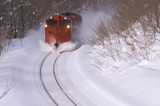 ここ東恵橋の撮影ポイントを訪ねるのは10年ぶりのこと。10年前は1人での撮影でしたが、この日は平日にもかかわらず20名ほどの撮影者が構える中、除雪車はラッセルしながら通過してくれました。