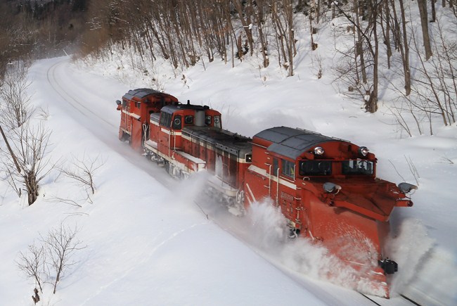 ここは二台体制。晴天のコンディションで、ラッセルシーンが撮れて、「雪レ街道」好スタートでしたが‥‥