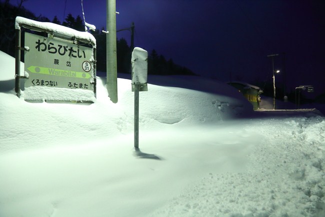 雪レを撮って、蕨岱駅に戻る頃には、空が少し青みがかってきました。この駅も来週には廃止。せっかくなので、始発列車まで粘ることにしました。