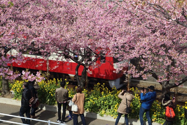 メインの撮影場所まで徒歩約10分。春爛漫の景色の中を歩きます。(2月18日)