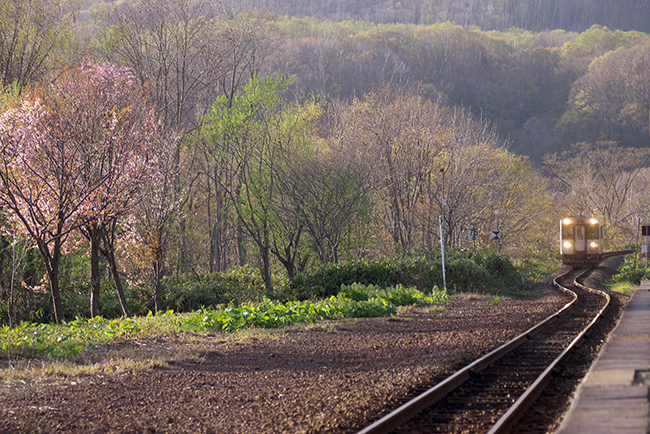 日が長くなったので、色があるうちにまだ3度の撮影機会がありました。まずは17時台の長万部行き。最も光線状態が良い列車ですが、「4つ目」にはちょっとがっかり。