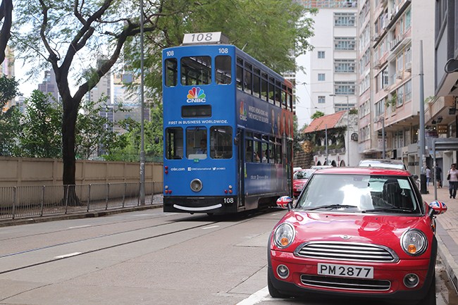 「跑馬地(ハッピーバレー)」への路線。単線区間となります。高級住宅街です。