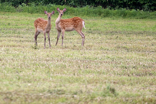道東は野生動物の宝庫です。今回、それも楽しみの一つでしたが、さっそく小鹿と目が合いました。