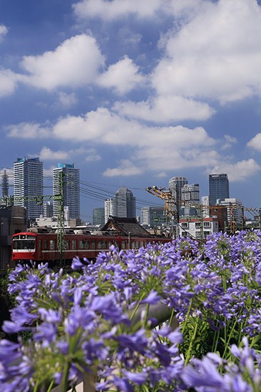 駅前の花壇スペースを見事なほどに埋め尽くすアガパンサス。