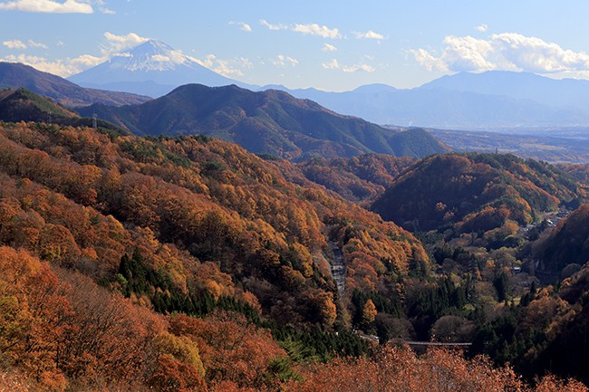 落葉松の紅葉の向こうには富士山。ここから見るシルエットは少しスリムです。この後、絶品ワインポークを頂きました。