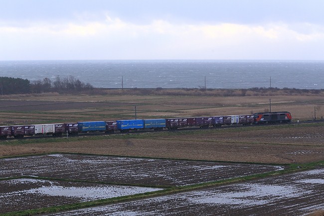 これはたまらんと、帰り道、国道沿いのお手軽場所で、ちょうど来た貨物を撮って、冷えたので温泉でもと伊達温泉に向かいました。