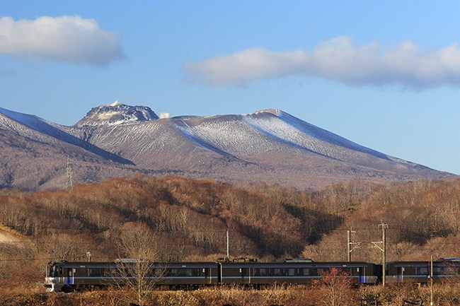 雪を被ったばかりの樽前山を撮って空港へ。次の訪問のときは真っ白のなっているのでしょうね。
