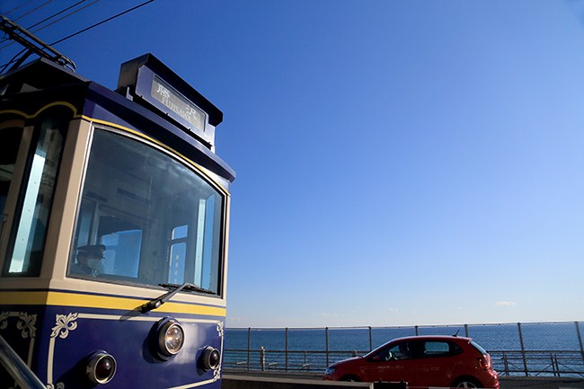 横須賀から鎌倉。鎌倉から江ノ電に乗って鎌倉高校前。冬の青空たっぷりです。