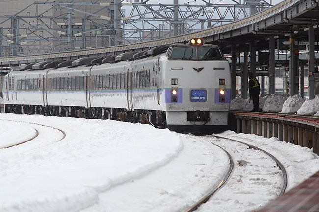 これまで、主として深夜か早朝の時間帯に、カシオペア、はまなす、北斗星などの名車両が入ってきた栄光の1番線。4両はやや寂しいですが、スラントノーズキハ183臨時北斗の到着です。