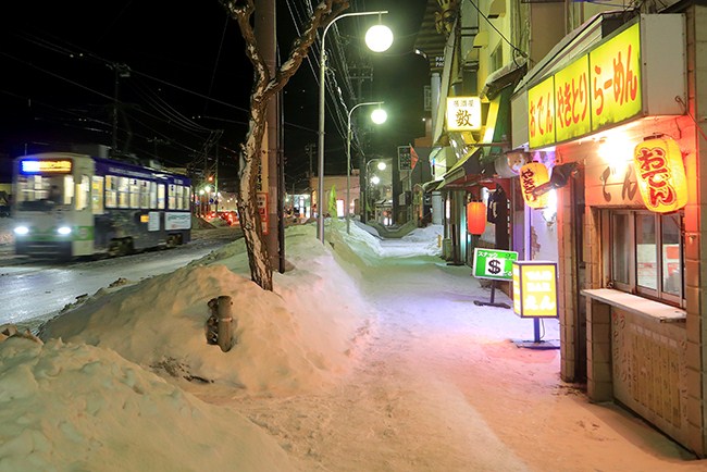 今夜のお宿は湯の川温泉。相当冷え込んできました。それでも宿は電車通りに面していたので、頑張ってバルブしました。雪が舞う湯の川の夜。明日の朝は積もりそうです。