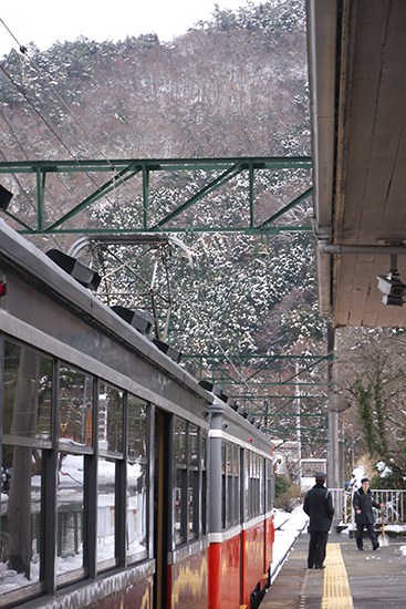 かなりの積雪量になってきました。前回は下車しなかった小涌谷で下車します。