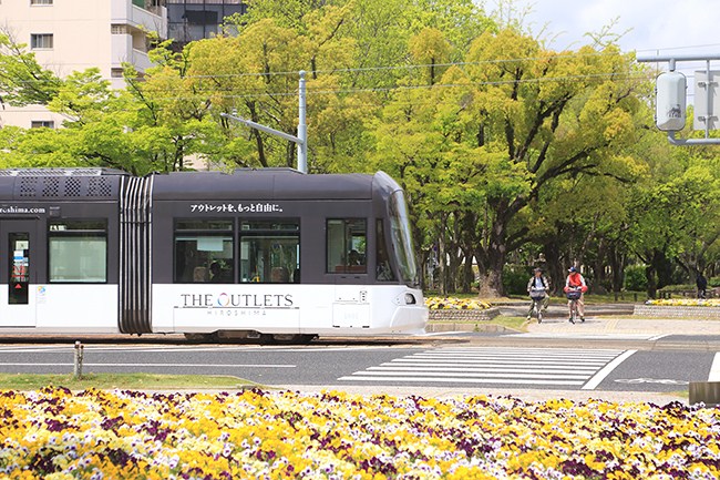 若葉溢れる広島の街。これは最新型車両ですね。