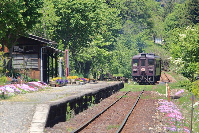 下り列車を見送る春。駆つけ上神梅。天気は極上です。このあと黒保根の道の駅「やまびこ」で、採れたての春(筍など)を買いました。