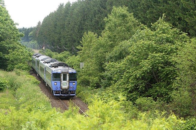 美幌駅でご当地入場券をゲットして、オホーツク1号を撮ろうと、女満別駅近くの道路から。スラントノーズではないキハ183、この車両も希少品種になりました。5両編成、北斗で使用していた車両です。