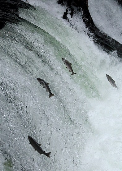 圧巻でした。流星群程度の頻度かなと思っていましたが、次々とサクラマスが滝を登ります。ほとんどが跳ね返されていました。後でネットで調べたら滝を登れるのはそんなに多くないのだとか。1/2000の高速撮影、すぐにメモリーがいっぱいになりました。私の満足度もいっぱいです。