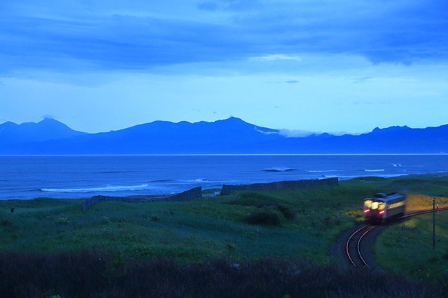 続いて、浜小清水を19:20に出た釧路行き。良い時間帯に通過してくれました。この丘は四季を通じて何度も登りましたが、こんな時間帯は初めて。宿についたのは20時過ぎ。まだ夕食前でしたが、駅前のセイコマで済ませました(十分です。)