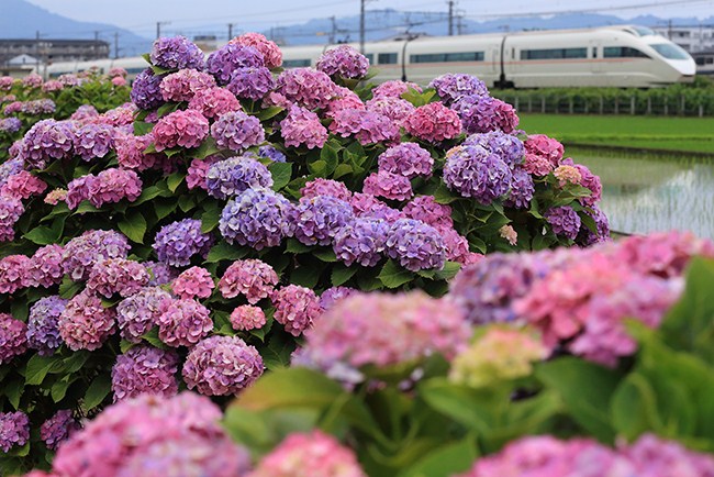 箱根に向かうつもりでしたが、時間も中途半端だし、ロマンスカーと紫陽花を撮って今日は終わりかなと、栢山で途中下車しました。紫陽花は色付きよく、咲きぶりもギリギリ間に合いました。