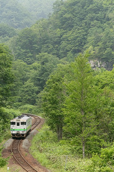 夕張からの折り返しは、すぐにやってきます。昨年も撮ったS字カーブですが、ここで北海道色を撮りたかったのです(昨年は日高色でしたから)。