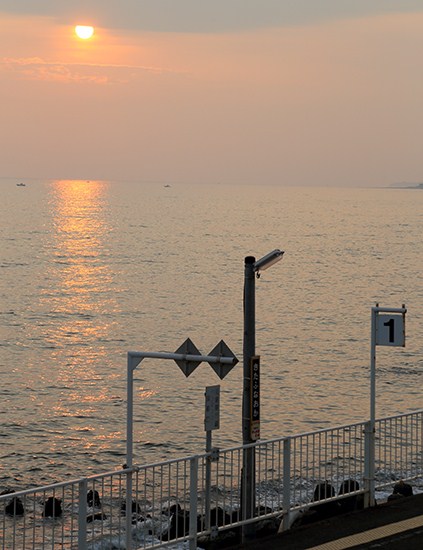 雲間から日が差しと、海を照らす、期待を持たせる夕暮れ時でしたが‥