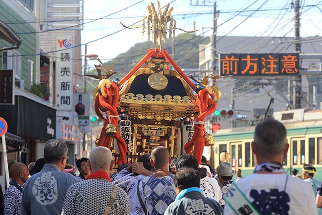 お神輿が出ると、やはり盛り上がります。勇壮です。
