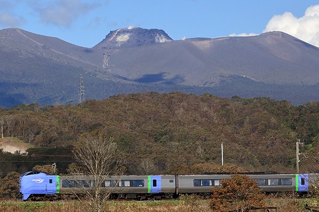 今回は一泊の超短い滞在です。お昼過ぎには白老を出て、撮影しながら帰ります。いつも撮る樽前山バック。前山が淡く色づいています。次来るときは雪化粧かな。