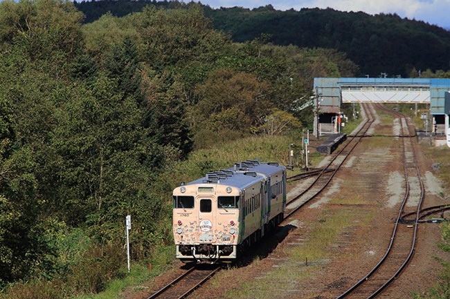 見慣れないキハがやってきました。これが「道央花の恵み」号ですね。沿線での撮影の楽しみが増えました。