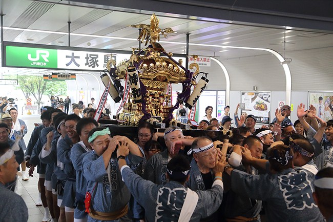 大塚駅の改札を出ると、いきなり聞こえてきた勇ましい掛け声。昨日、今日と、大塚天祖神社の例大祭です。このお祭りは何度か訪ねていますが、かなり広域(池袋から巣鴨あたりまで)の各町内のお神輿が荒川線沿線を通ります。