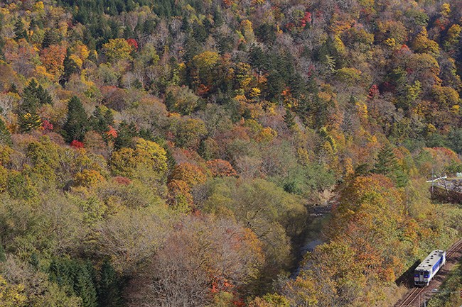 後追いは、やや窮屈なアングルですが、夏に撮影した時から狙っていた構図。この辺りが山の紅葉が一番見事なので。夕張線、廃線まで残り5ヶ月となりました。来年(2019年)3月のダイヤ改正で、栄光の歴史の幕を下ろします。白老鉄日記であと1回くらい訪問できるかな。