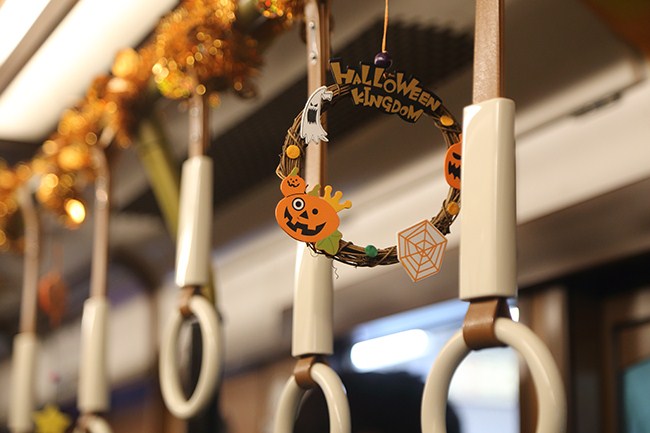 9002が、今年も、ハロウィン電車に。楽しい車内です。