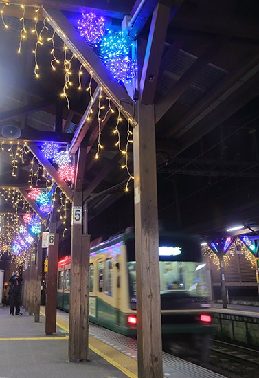 長谷のイルミは綺麗ですね。締めはこの駅で。