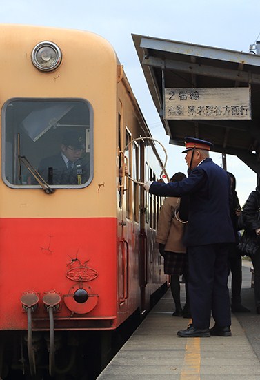 牛久駅で見られる、タブレット交換風景。貴重です。