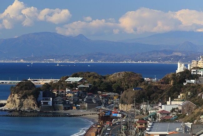 富士も見えたら、幸先良いかな。でも、残念ながら雲の中。代わりに烏帽子岩と伊豆半島を望む。