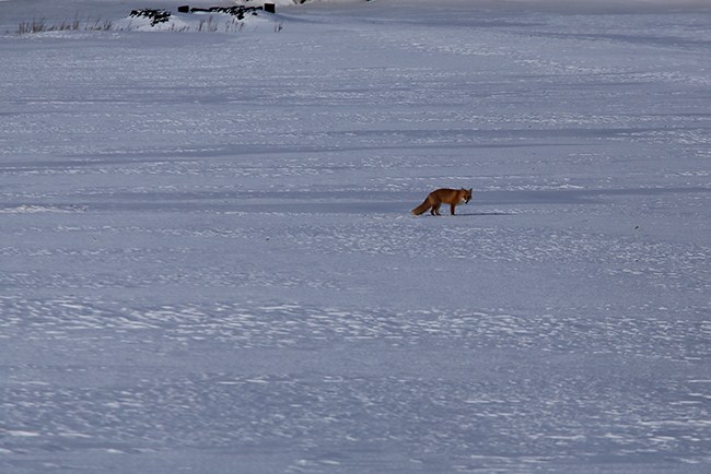 釧網本線では夕方まで撮るものなく、天気も悪化する予報なので、オホーツク海と別れ斜里の町へ。途中雪原にキタキツネを発見!