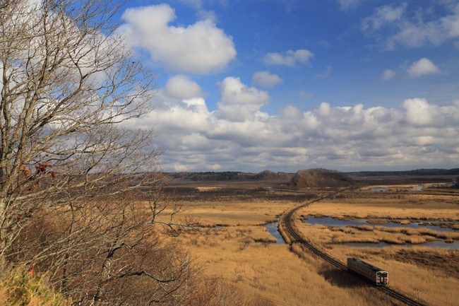 根室本線 糸魚沢(2014年11月) 出発当日寝坊してしまい、タクシーで羽田に駆けつけ、ギリギリ間にANA便に間に合うなど、思い出深い2014年秋の北海道の旅。室蘭でトワイライトを撮り、札幌でジンギスカン、そして、長駆道東へ向かい、10度目の別寒辺牛湿原。かすかに秋色の残る晩秋の湿原は最高でした。